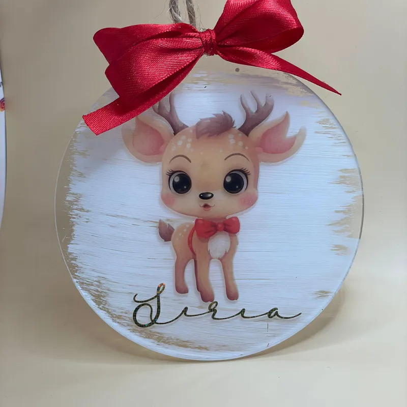Decorazione in plexiglass 8,00 € Decorazione a forma di fiocco di neve, personalizzata con nome in rilievo e cordino per appenderla.