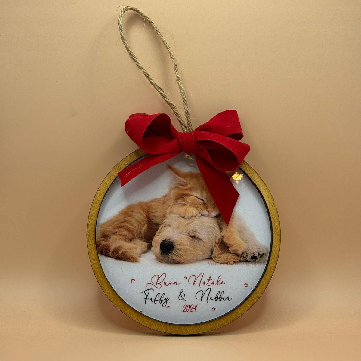 Decorazione con personaggio a tema con nome, arricchita da un fiocco rosso. Confezione regalo inclusa per un tocco speciale.